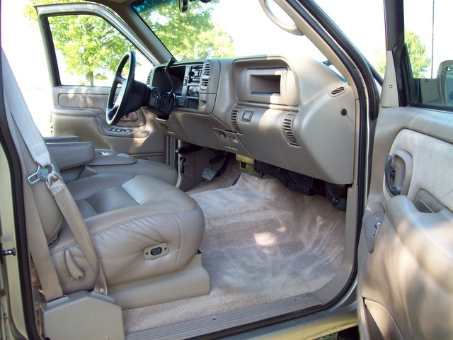 INTERIOR: FEATURES THE LT TRIM PKG. HAS THE TAN LEATHER PWR BUCKET SEATS WITH CENTER CONSOLE. PW, PL, PM, TILT, CRUISE, COLD AIR, AND FACTORY CD/STEREO. EVERYTHING WORKS PROPERLY WITH NO ISSUES. INTERIOR CONTAINS NO MISSING OR BROKEN TRIM PIECES, COMPARTMENTS DOORS, OR LATCHES. IT WAS OWNED BY A NON SMOKER AND HAS NO SCENT OF ANY OTHER ODERS. THE INTERIOR IS IN GREAT CONDITION HOWEVER, SOMEONE HAS PREVIOUSLY REPAIRED THE EDGES OF THE FRONT SEATS AND THE COLOR IS OFF. AS WE ALL KNOW, THESE TRUCK ARE GETTING VERY HARD TO FIND IN THIS CONDITION! TRUCK OVERALL HAS A NEAT NOSTALGIC OLD SCHOOL LOOK!