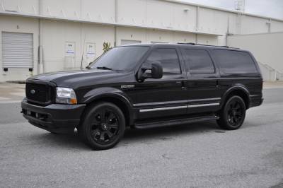 2003 FORD EXCURSION LIMITED  WITH A POWERSTROKE TURBO DIESEL, AUTOMATIC TRANSMISSION, LEATHER, COLD A/C, POWER WINDOWS, POWER LOCKS, POWER MIRRORS, REVERSE SENSORS, AM/FM STEREO CASSETTE/CD PLAYER, BRAND NEW 22" TUFF WHEELS WITH BRAND NEW 305-45-22 TIRES, THE INJECTORS, EGR, AND OIL COOLER WERE REPLACED.