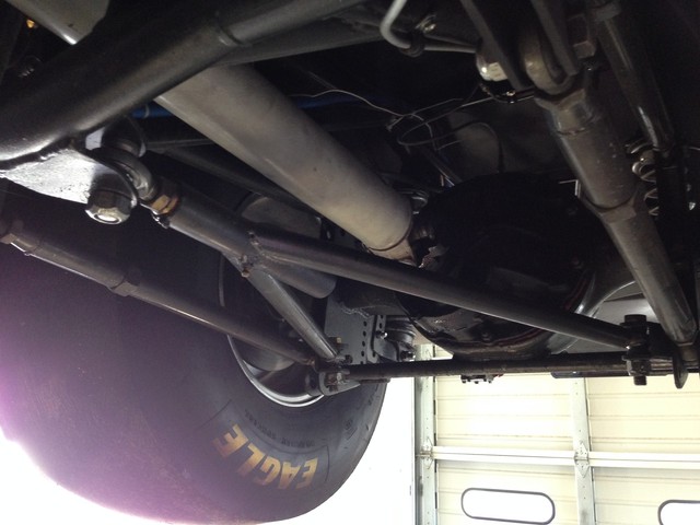 Chassis- Double frame rail car, mild steel tubing, 9 inch ford, moser axels, 4 link rear suspension with a wishbone, ajustable 4 link bars, the rear end was painted nice and is all tope notch work and welds as you can see, its all braced well in the floors all the way up the car to the mustang II style front suspension, rack and pinion steering, all top notch parts, aerospace disc brakes front and rear