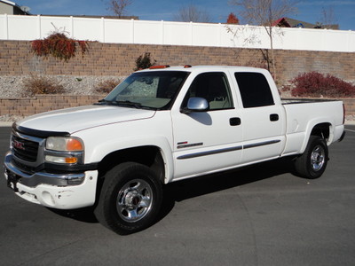 2003 GMC Sierra SLE, duramax diesel, 4x4, crew cab, short bed. The engine in this truck does not have blow by, compression is excellent! Excellent cold start, Tons of power! Transmission shifts good in al gears! 4x4 works in high and low range. We had the transfer case pulled out and put a new tone ring in the rear of the case, this is a common issue as the ring wears out and looses communication with speed sensor,  so that has been dealt with accordingly. For the miles this truck has I cannot emphasize how comfortable, tight and solid this drives down the road! no loose front end, no hard or harsh worn out suspension noises or feeling. You can feel confident driving this to any destination! Here are some issues I want to disclose: at idle the truck smokes white smoke, this is common on 2003 duramax injectors, this does not in any way affect the performance of the motor, engine is very responsive and injectors feel good under acceleration. On the highway the smoke goes away. Lower front valance and grill could use replaced as they have minor damage (see pictures). Windsheild has a couple cracks, Left rear pasenger door and cab corner could use body work due to dent but in no way affects the operation of the door. Thee are some small dings on the tailgate. some small scratches on the bed. Bed has spray in liner with goose neck. tires are 20-50%. Picture of driverse seat shows the power seat switch missing but I have since replaced it with one. call with questions 801-358-5406 mark.