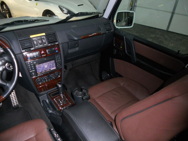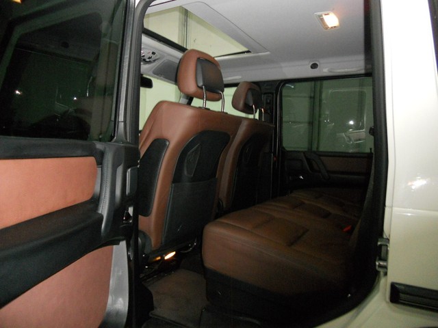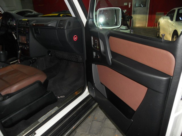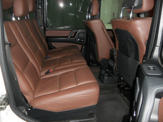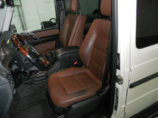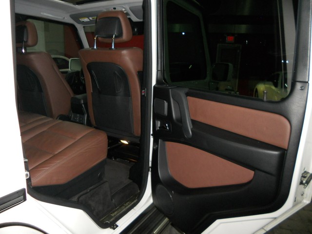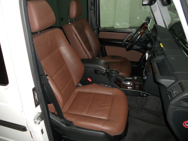 Optional Features range from the Heated Wood Steering Wheel, Ventilated and Heated Seating, Bi-Xenon Headlights, Rearview Camera, GPS Navigation System, and Lumbar Seat Controls.  This combined with the immaculate White Paint, VERY RARE two tone Black and Dark Brown Interior Color make this G550 the best around.  Please note...the actual brown interior color appears lighter in the pictures than when viewed in person.  The Brown is a color that is similar to dark chocolate.  The only sign of wear is on the driver seat bolster, where you can see the seat has some fading from entering and exiting the vehicle.  This can be seen very clearly in the photographs.
