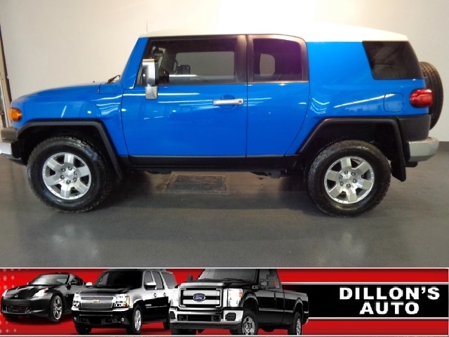 Sharp looking VooDoo Blue FJ Cruiser. Carfax shows two-owner but we are the second Owner. Upon request we will provide - free of charge - complete vehicle history reports on any/all of our vehicles. We have over 500 quality preowned cars, trucks, vans, and SUV's in inventory. Over 250 are one owner vehicles. Our mission statement is to sell a lot of vehicles and sell them - most times - thousands less than our competitors. We believe in offering a selection to our customers of the particular make/model of vehicle that turns you on the most. When you turn on a car that was purchased at Dillon's...we want that car to return the favor!! This is a great previously owned vehicle.This is a smoke-free automobile.There is no damage evident on this vehicle.The engine on this vehicle is running properly.The exterior of this vehicle is extra clean.Extra clean interior. Absolutely no rips, odors or abuse.There is approximately 75% of the tire tread remaining.This vehicle has a smooth shifting transmission.The electronic components on this vehicle are in working order.