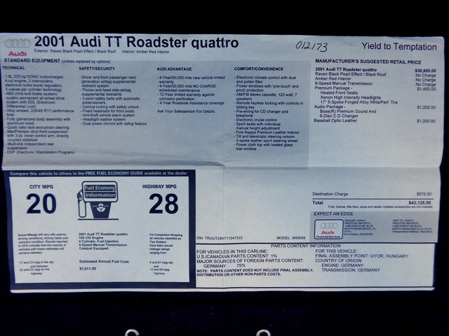 I'm here to help! Print and bring my SmartBuyer Checklist when you go to test drive this 2001 Audi TT Quattro AWD.