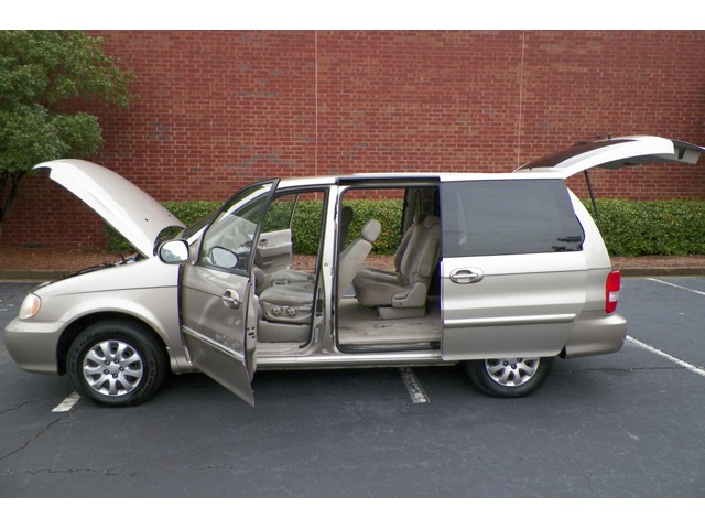 This is a 2004 Kia Sedona LX that is Equipped with Power Windows, Power Locks, Power Steering, Power Side Mirrors, Cruise Control, AM-FM Radio, CD Player, Driver & Passenger SRS Airbags, Cold A/C, Rear A/C, Child Safety Locks, Tinted Glass, Child Safety and Much Much More. This 1 Owner Sedona LX is in Good Condition and is ready for it's 2nd Owner!! This Sedona only has 143,016 Original miles!! This Sedona LX Drives Great!! (The Miles may be slightly higher due to frequent test drives). The Kia Sedona LX is designed with transportation in mind, due to its flexibility, styling and quality construction. This four door people hauler is offered LX trim with  a 3.5-liter V6 under the Hood!! For the safety-conscious, the Sedona boasts a long list of equipment, including front head airbags, ABS, and child safety rear door locks. This Vehicle drives just like a Kia Sedona LX is supposed to!! It features a Gold Exterior and a Tan Cloth Interior.  (The interior & exterior shows minor wear).PLEASE SEE ALL PICTURES BEFORE BIDDING. This vehicle's engine and transmission are in GREAT working condition. The engine does NOT OVERHEAT and has no known defects. The winner will be provided with all documentation and a 30 day Temporary Tag. We offer free airport pick-up for all winners(Atlanta Airport). Please call in advance to arrange for airport pick-up.  If you need to see additional pictures please contact us and we will e-mail them to you ASAP.