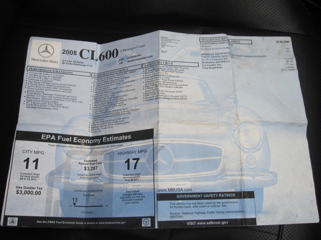 National Auto Outlet is proud to offer this Gorgeous Luxurious 2008 Mercedes-Benz CL600 Coupe with 118k miles at 7 DAYS NO RESERVE PRICE AUCTION. This Mercedes-Benz is part of our "Just Came In" Program. We are offering this 2008 Mercedes-Benz CL600 Coupe at an exceptional price. We are running a true "NO RESERVE PRICE AUCTION". The last bidder will buy this vehicle for the end price. Mechanically the Mercedes CL600 runs like a champ. The 12 Cylinder Bi-Turbo engine on this Mercedes-Benz runs strong.  We just did a major tune up on the engine by replacing the turbos so this Mercedes-Benz CL600 is ready to hit the road with no problems.   The automatic transmission shifts nice. All options work 100%. This CL600 is the Ultimate Luxury and is loaded with Heated Leather Seats, NAVIGATION SYSTEM, Sunroof, AM/FM/Sat Radio/CD Player Sound System, Alloy Wheels. The exterior has been very well maintained and is in very good condition.  The interior is pretty clean.  The Leather seats are in very good condition.  All four rims have some curb mark scratches on them.  The mileage represented on this vehicle is accurate. This Mercedes-Benz CL600 comes with a Clean Title.  Please note Carfax shows 2 prior accidents with the first accident showing that the Mercedes hit a parked motor vehicle and the 2nd accident showing that the Mercedes hit a concrete barrier with the air bag being deployed.  We are honest with all of our cars and don't hide any details.  The Mercedes-Benz CL600 runs strong and is ready to hit the road.   Drive this CL600 cross country with no problems. Highest bidder buys this vehicle at the last price at the end of our 7 DAYS NO RESERVE PRICE AUCTION.  Just 5 years ago this Mercedes-Benz was sold brand new for over $152k.  Please call me at 347-681-2678 with any questions.