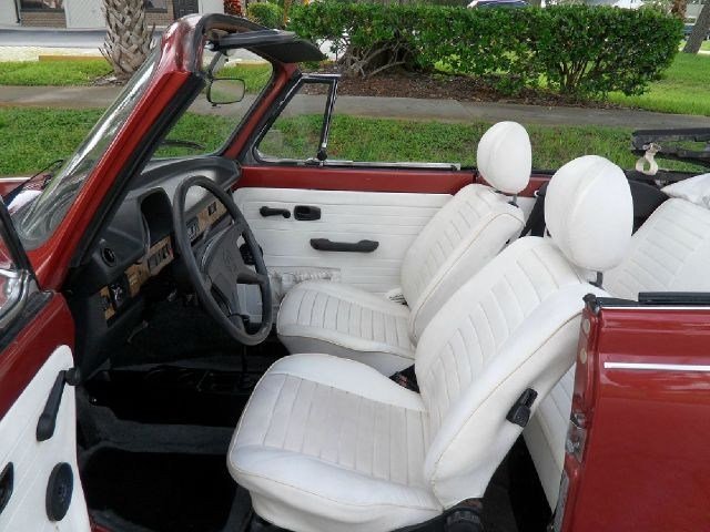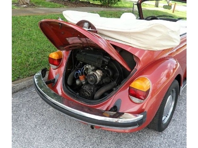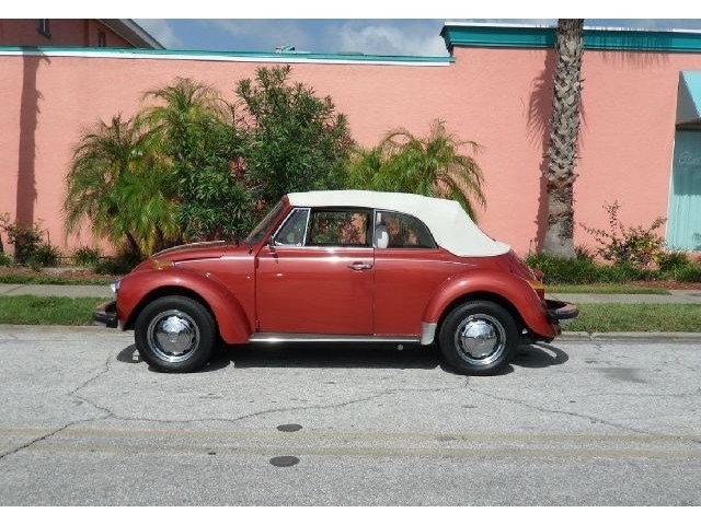 1978 VW Beetle Convertible For Sale. 1600cc 4 cylinder engine, 4 speed manual transmission, 15 chrome wheels with radial tires, eye catching metallic paint, with accenting white convertible top with glass rear window, convertible top boot, white bucket seat interior, Dual AM/FM/CD radio with AUX port. This classy little beach cruiser is ready to turn heads!!!