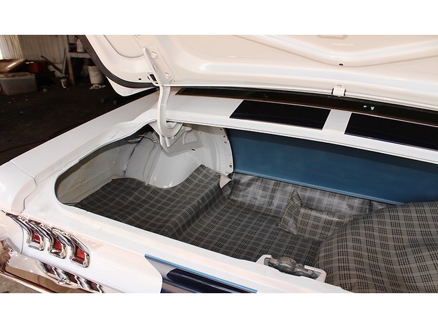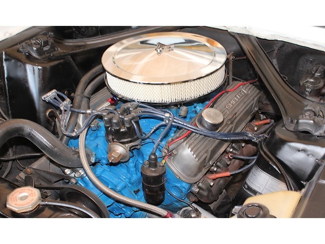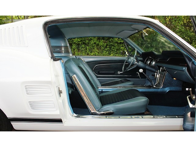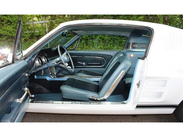 Next, we will take a look inside the ’67. It’s all done in the correct Two Tone Blue that provides the perfect complement to the exterior scheme. With this being a 2+2 it has the fold down rear seat. The seats carpet door panels all look very good. This is a console car and it is correct. When you look at the dash the only that is not factory is the radio that was upgraded to a vintage AM FM.