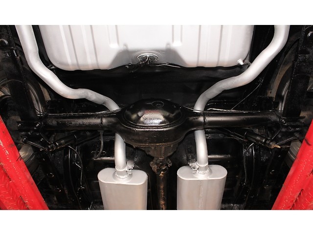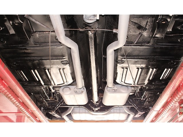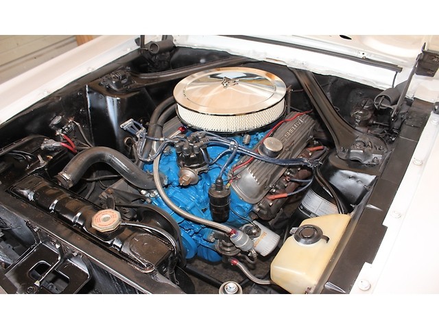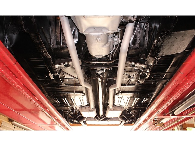 Finally, we will take a look at the driveline of the Ford. Under the hood it has a 289 V8 that is mated to a Top Loader 4 speed and a 8” Rear End. The engine has Shelby Valve Covers and a Chrome Breather. It’s a factory 2 Barrel that has been upgraded to a Holley. The exhaust retains the Manifolds but the mufflers were upgraded to Flows. When you look under the stang all the floors and frame rails look solid.