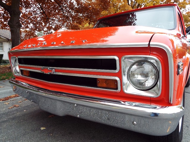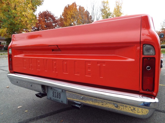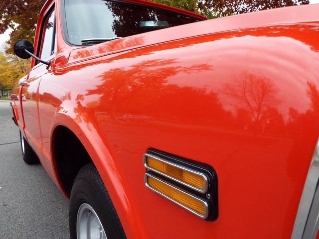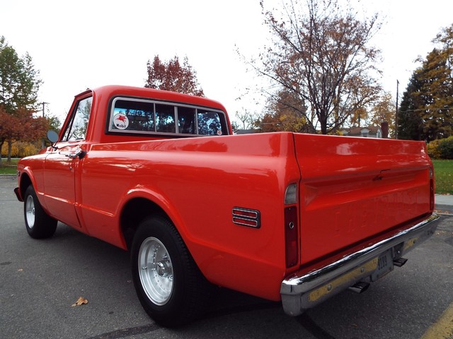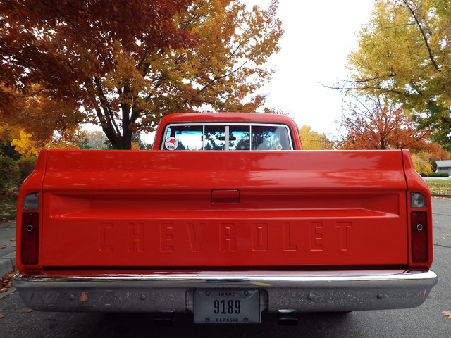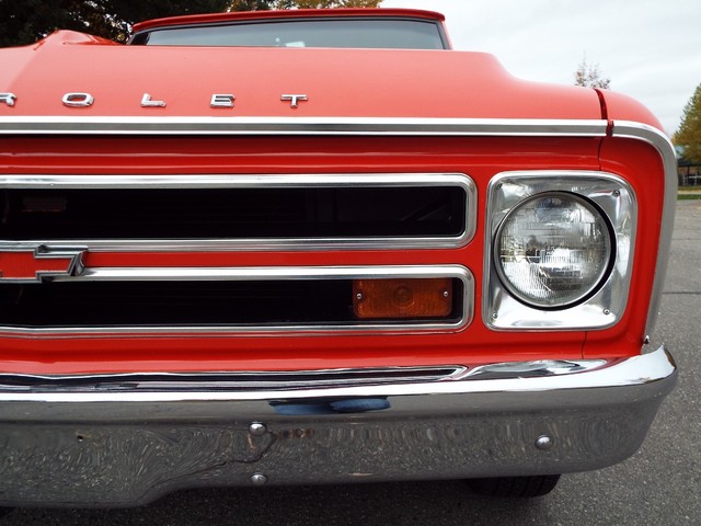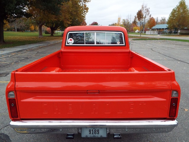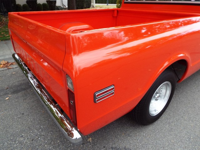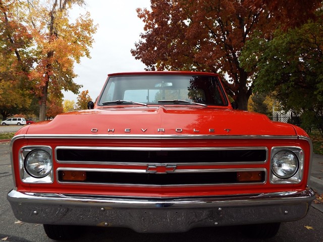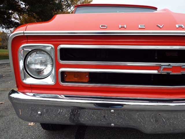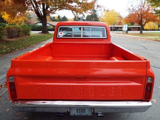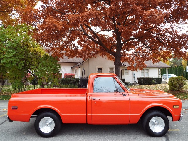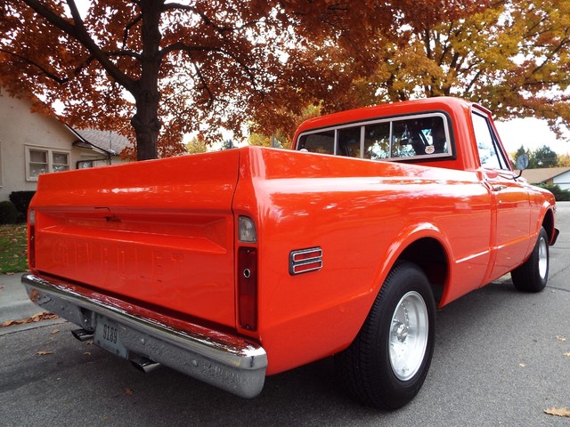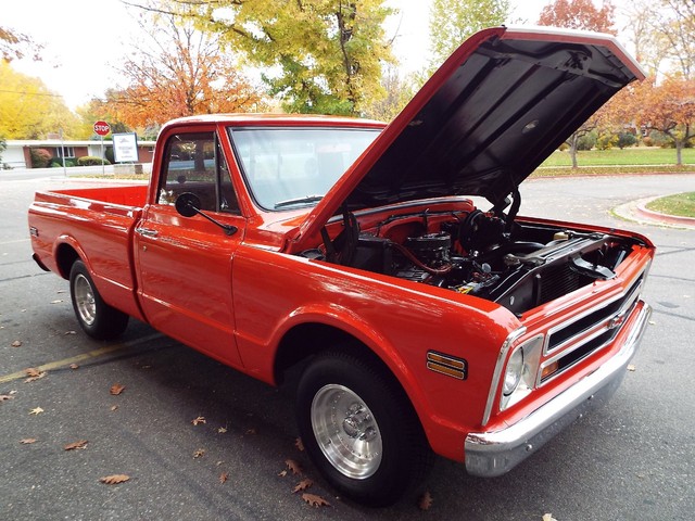 This is a NICE - DRY - SOLID - Idaho High Mountain Desert - western  truck and it shows !! In my opinion your not going to find much nicer ORIGINAL FLOORS than the ones that are on this BEAUTY, UNBELEIVABLE !! The EYE POPPING BEAUTIFUL Hugger Orange  exterior paint is in VERY NICE shape with really little to no wear showing other than a few small chips and is still bright and shiny and looks STUNNING as you can clearly see in the video above and the 100 pictures below. This Chevy C10 Short Wide Box Hotrod Pickup is nicely equipped including factory power steering, factory power brakes, dual exterior side view mirrors, good tinted glass, custom frenched in power antenna, factory gauge package with a rare factory tachometer, factory power wipers, original factory day / night rear view mirror, good heater and defroster, awesome Realistic AM /  FM / cassette player stereo radio, factory seat belts, factory back up lights, "blue dot" taillights, factory wing windows, sliding rear window and a frenched in power antenna. All of the rubber weatherstripping is soft and supple and is in good condition !! The electrical system is also all  in good working condition. This C10 is in good condition from top to bottom and from front to back. It will not disappoint someone looking for a clean example of a sought after and hard to find classic "Muscle  Truck" which is not seen at every stop light for sure. If you have been looking but cannot find a sharp '68 C10 Short Wide Box worthy of your hard earned money look NO further because this is the one! The Clean - Solid - Straight bed is also in NICE condition, you would be hard pressed to find a nicer one !! The ORIGINAL chrome and stainless steel body trim is in VERY NICE condition including VERY NICE Chrome front and rear bumpers, NICE ORIGINAL stainless steel grill, NICE ORIGINAL stainless steel front trim and headlight surrounds. Check out the custom frenched in power antenna, TOO COOL !! All of the ORIGINAL light lenses and reflectors are clear, bright, UNCRACKED and look BEAUTIFUL !! Check out the AWESOME  "Ultra" billet centerline  wheels wrapped in nearly new Kelly steel belted radial tires !! Boy does this combination look OUTSTANDING on this truck and give it that mean "Muscle Truck" look !! This vehicle is in GREAT mechanical condition and it runs and drives very well. It is solid with respect to the overall mechanical condition as well as the overall cosmetic  impression. I looked underneath and included 100 photos below some of which show the undercarriage. Again this is a NICE - SOLID - DRY - Idaho High Mountain Desert - Western truck!