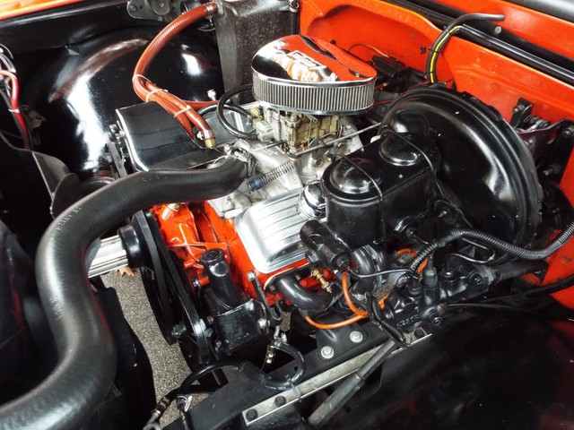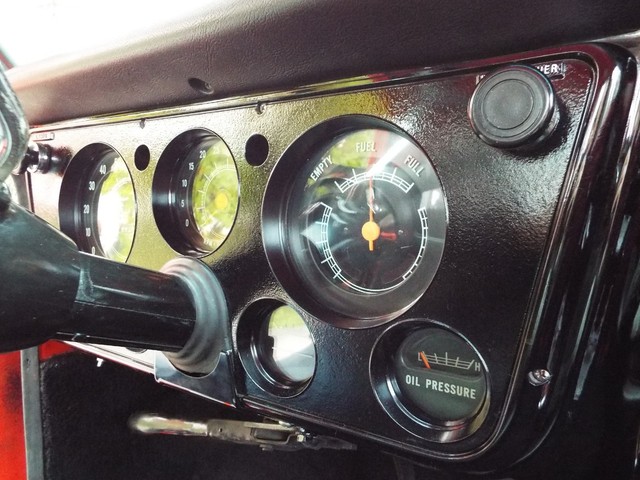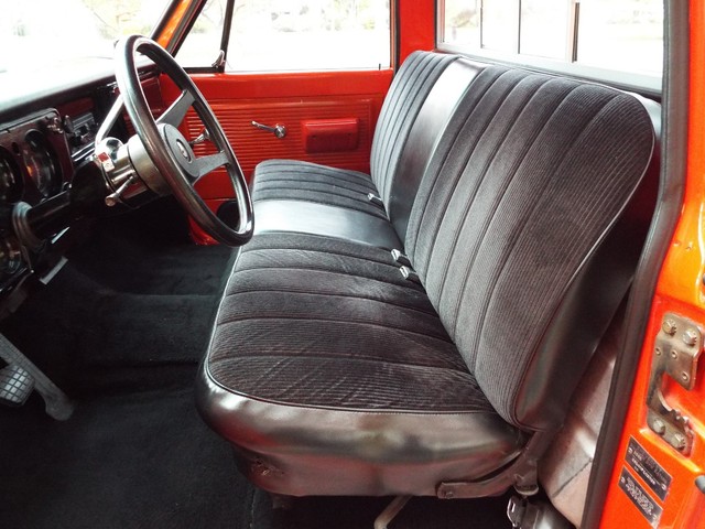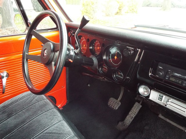 The heart of this Chevy C10 is a VERY STRONG - 350 CID V8 and it is running EXTREMELY well to say the least! The motor is equipped with a Rochester Quadrajet four barrel carb, Weiand custom chrome air cleaner housing, performance aluminum four barrel intake manifold,  custom high flow exhaust manifolds and polished Chevy "Bowtie" valve covers. Sounds AWESOME too with the - "Throaty" - True Dual exhaust system with chrome tips. The motor is backed by a SMOOTH - 700R4 three speed with overdrive automatic transmission that also functions very well. The Black Cloth and vinyl interior is VERY NICE including a VERY NICE Black cloth and vinyl bench seat, VERY NICE  Black dash, VERY NICE Black vinyl dash pad with NO CRACKS, VERY NICE ORIGINAL factory gauge clusters including a correct factory tachometer, NICE Black carpeting, VERY NICE Black cloth sun visors and a VERY NICE Chevrolet steering wheel. I drove this truck for several days as my daily driver to and from the office and running errands as needed and I can tell you it runs and drives GREAT, TOO FUN !!