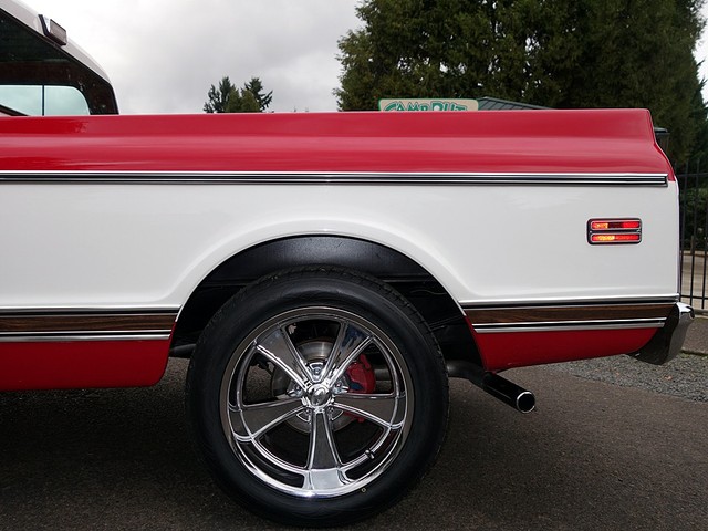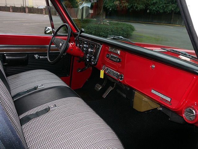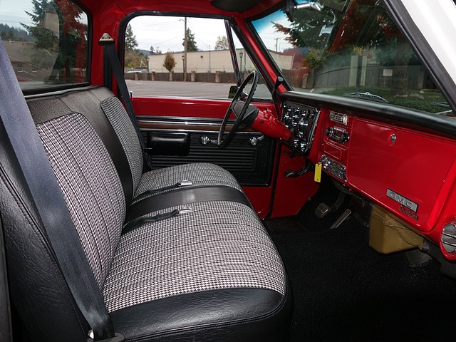Absolutely stunning, hard to find, short bed Chevrolet C-10 pickup. No expense spared, frame off restoration finished in show quality Red and White paint. Beautiful, comfortable, and classic Houndstooth bench seat interior with tilt steering wheel and tach. Looks incredible with the new 20 inch chrome wheels and new performance tires.