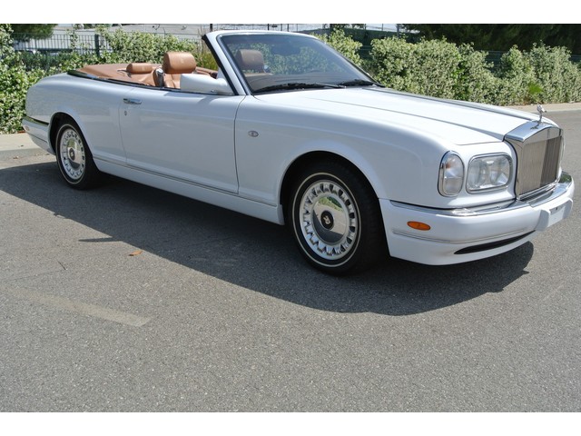 2001 Rolls Royce Corniche Convertible finished in a gorgeous White on Tan color combination with a matching Tan top. Just had a complete service done and is ready for a new home. Service included 6k service, new front brake pads, all new belts, and front brake spheres. Beautifully optioned with RR logos stitched to all the headrests, Burr Walnut wood veneers, wood and leather steering wheel, manual books and Clean Car-fax. Exterior is in very good condition no damages or notable flaws. Interior is in excellent condition as you can see, leather is free of rips, or stains. Wood is in very nice shape through out , only a couple of lines on the door cap wood. The top is in very nice condition and operates smoothly.  We have 2 in-stock now! Call for complete details! Classic Motor Inc. Rolls Royce and Bentley Sales and Service (818)988-1045 pt. SERIOUS BIDDERS ONLY PLEASE. WE HAVE MANY MORE ROLLS ROYCE AND BENTLEYS IN-STOCK NOW!!