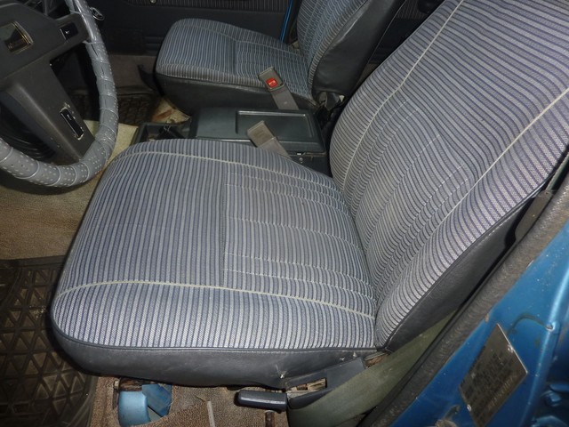 The interior of the truck is completely original and in nice condition. The dash pad has a small crack in the right front speaker area but otherwise is nice. All the gauges work properly including the original odometer and tachometer. The aftermarket radio does not work. All the dash lights work properly. The original steering wheel is in good condition. The carpet in the truck is completely original. Other than being faded and soiled in some areas the original carpet is in good condition. All four door panels are in good condition. The original headliner is good. All the seat belts are complete. All the tire change tools are original and under the drivers seat. The auxiliary heater is under the passenger seat. All in all a pretty nice original interior!