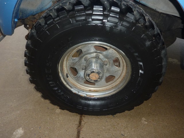 Mechanically the truck runs and drive excellent! The engine is cold hearted when started in the morning but runs fantastic when it warms up. There is no noise or blow by in the engine. I am told it has been rebuilt in the past however I have no paperwork to document that statement. Given the mileage on the truck the and the way the engine runs it would have had to been rebuilt at some time in the past. The engine does not leak and is totally complete including a nice Midas exhaust with a replaced catalytic converter. The truck has a nice set of Bridgestone Dueler MT tire mounted and balanced on the original wheels. The spare tire with the original wheel is still under the truck. The truck drives excellent. The engine pulls strong and the transmission shifts good. The brakes stop straight. The air conditioning is complete but will need a recharge next Spring. All the lights work properly including the dash lights and high beams. The manual front lock-out hubs work properly.