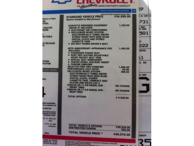 • Chevy 40th Anniversary Low Miles Clear Title Stock Sports Car V8 Auto Corvette