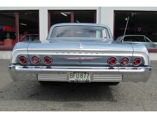 This is one of the nicest 64s you will find, 67k original miles.  It was a one owner car until a few years ago.  Sold new in Puyallup WA at Grant's Chevrolet on River Road.  Have original warranty book, and owners manual.  The Impala has the original 283 ci engine and a 2 speed power glide trans.  All the drivetrain has been rebuilt about 2500 miles ago.  The paint is show quality on its never seen rust body.  The chrome and stainless looks like it did  from the show room.  The Very nice blue interior has had NOS seat covers and NOS carpet replaced but everything else is original and like new.  If you have any questions please call us at 253-272-5293 or send us an email at premiummo@comcast.net