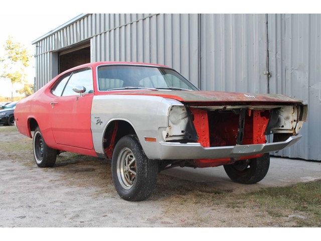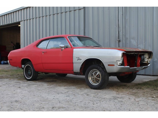 Check out this 1972 Dodge Dart Demon.  The restoration has already been started on this very solid body!  The car body is in good shape and is straight.  The only thing we have found is the driver's side front floor pan has some rust.  This is the perfect body to be turned into a race car.  This is a very light car making it ideal for all sorts of racing most notably drag racing.  The interior is still intact, clean and in good condition.  Underneath the car is clean and the suspension and mounts all appear to be good.  The pictures speak for themselves!  This is a solid car that is ready for some paint and your drivetrain!