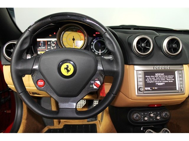 Extra Options: AFS System, Yellow Brake Calipers, Carbon Fiber Driver Zone + LEDs, Cruise Control, Daytona Style Seats in 'Beige', Daytona Style Rear Seats in 'Beige', Electrically Operated Seats, 'Scuderia Ferrari' Shields, Magneride Dual Mode Suspension, Inn/Out Electo. Mirror + Homelink, Parking Camera, Front and Rear Parking Sensors, 20' Diamond Finish Sport Wheels, Yellow Rev. Counter, Tire Pressure Measurement. Exterior Color: Rosso Mugello Interior Color: Cuoio Remainder of Factory Warranty until 03/23/2015 Genuine Maintenance Service 7 years until 03/25/2019 Please call sales with any questions or to schedule a viewing: 415-380-9700 It is said to be the most useable Ferrariever, and with good reason. With its folding metal roof, the California iseasily transformed from a coupe to convertible a sports car to a grand-tourer.It gives its master the opportunity to be vibrant and exciting at the rightmoment, and calm and refined at others. The California comes equipped with Ferrari’sfirst double-clutch automated manual gearbox at the rear, and the newdirect-injection 4.3 liter V8 in the nose. Together they provide all of the performance you would expectfrom a Ferrari with the comfort in drivability that you can expect now. WithF1-Trac variable traction, stability control and carbon ceramic brakes, thefeatures that make a Ferrari, a Ferrari, have not been ignored.
