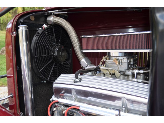 The body is original Henry Ford steel with fiberglass fenders by Wescott. For a more unique look, the Coupe features a 32 fiberglass radiator shell by Wescott and a stainless grill.