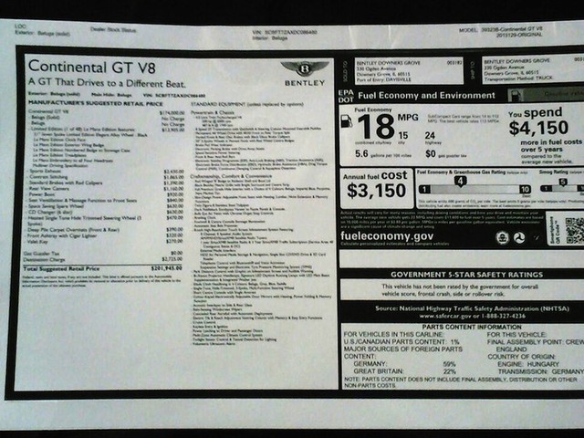 13' Bentley GT v-8! only 3k miles! original msrp $201,945.00!1-owner! 7734073227