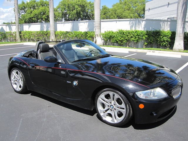 2005 BMW Z4 3.0 ROADSTER SPORT WITH SUPER EXTRA LOW 63K FLORIDA MILES, 3.0L 6 CYL  ENGINE, PREMIUM PACKAGE, SPORT PACKAGE,  AUTOMATIC TRANSMISSION, SUPER NICE 18 INCH SPORT ALLOY WHEELS, ICE COLD AIR CONDITIONING, LEATHER INTERIOR, IN DASH CD DISC PLAYER, POWER CONVERTIBLE TOP AND MUCH MORE. Up for auction an absolutely gorgeous looking in Triple Black color BMW Z4 Roadster that has truly been well kept and maintained. This vehicle's history report shows it to be a two Florida owners vehicle! The mileage represented is the actual mileage of this vehicle. Clean smell throughout, appears to have never been smoked in. This vehicle has all of its original body parts and appears to have never been in an accident. It has a CLEAN AUTOCHECK history report! We looked all over and found no door dings, obviously this vehicle is one of those vehicles you always see parked deep in the parking lots. To look this good, it is obvious that this beauty has been garaged. This vehicle's transmission shifts out nice and smooth from gear to gear. The engine is mechanically sound and can be driven anywhere with confidence. The elctrical and optional equipment on this vehicle has been checked to insure that it is all in working condition. This cream puff is a top-flight used vehicle, with no known defects. No warning lights on the dash and No oil leaks makes it a Great vehicle! The beautyful Black leather interior is clean and polished looking. The set of four Pirelli P Zero tires is in an excellent shape and ready to roll!!! Plan a trip or vacation to Florida and we will pick you up at the Ft Lauderdale airport only 15 minutes away. Please call us for more information and the lowest shipping quote at 561-317-1916. Thank you for reading and Good Luck!