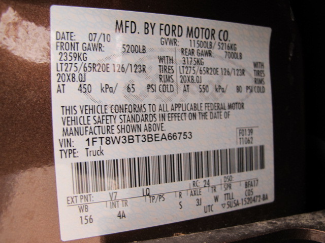 VIN: 1FT8W3BT3BEA66753 Stock Number: BEA66753P Mileage: 34218