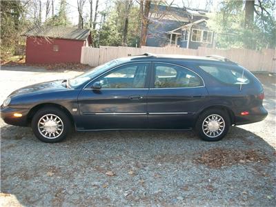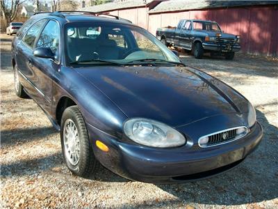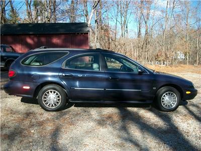 This is the 1998 Mercury Sable Wagon. . . .its a ONE OWNER car . . .with just 108k miles (7,100 miles year) . . .we just purchased this car from an estate in Branford,CT . . . .it was owned and driven by an elderly woman (birth date on title 1929 making her 84 y/o) . . .she was the original owner, we have ORIGINAL 1998 Connecticut title. . . . car was NEVER driven in snow or in the winter . . . nice navy blue exterior with gray leather interior. . . runs and drives good. . . . transmission shifts fine. . . . and the engine runs fine, starts instantly and runs good and maintains proper temperature, interior is clean, no rips, or stains and was NEVER SMOKED IN (lighter and ashtray unused) . . . naturally there are the usual small dings, scrapes and flaws on the body, paint is slightly faded, and has lots of flaws . . . . and the bumper covers were touched up with aerosol paint (correct color) . . . the only annoying thing is the lady put some expensive snow tread tires on it and they are LOUD. . . it it might need front wheel bearings (but that could be the tires). . . .neither is a big deal. . . . it features 3.8 litre V6 engine, automatic transmission, p/seat - a/c (not cold) - p/s - p/b - p/locks p/win - ABS - dual airbags - factory alloys - tilt - cruise - we have all the owners manuals and one original keyfob. . . .this Mercury Sable starts at $500 and sold NO RESERVE. It has a clear Connecticut title and bill of sale - OVERALL this is a great car . . . . .