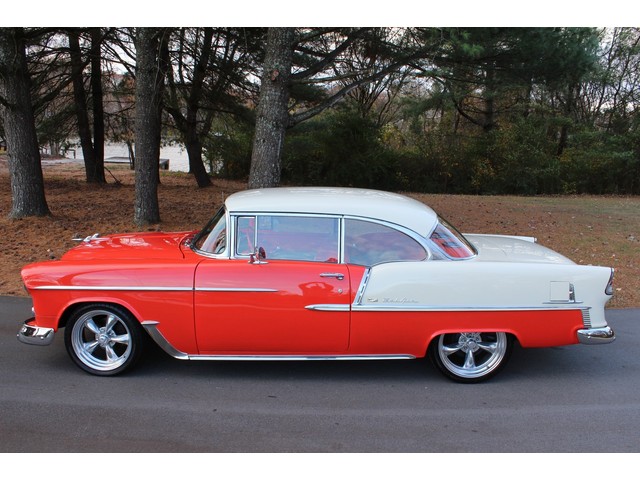 Up for sale we have a 1955 Chevy Bel Air Hardtop. This was the car that started an all new era for Chevy. The shoe box 44 with the all new V8 was to forever change the face of automobiles. It is one of the most recognized and renown vehicles in the world. The ’55 Chevy Hard Top that we have for you has some great upgrades with the AC and Power Disc brakes, but more than the options this is a killer looking car that runs out and drives A1. It comes with a lot of miscellaneous documentation from over the years and was bought be a 3 owner car. In the paragraphs to follow we will give you a brief description of the exterior, interior, and heartbeat of the Chevy, but first we would like to tell you a little about us.