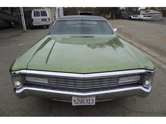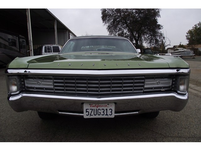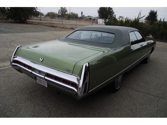 It has a STRONG factory correct code “E85” 440 CID V8 motor in it that is running very well. The engine is backed by a smooth "D32 code" 727 Torqueflite three speed automatic transmission which also functions well. This beauty has a VERY SHARP appearance and even sports the BEAUTIFUL ALL ORIGINAL green Brocade cloth upholstery. The Interior is one of the VERY NICEST we have EVER had, with the very nice ORIGINAL instrument cluster with correct wood grain appliqué's, very nice ORIGINAL dash pad with no cracks or fading, very nice ORIGINAL 50/50 split bench seat with fold down armrests, very nice ORIGINAL rear bench seat with fold down armrest, Very nice ORIGINAL door panels with the correct burl wood grain appliqué's, nice ORIGINAL headliner. Nice ORIGINAL carpeting and a very nice ORIGINAL steering wheel. Original and loaded to the gills including COLD FACTORY AIR CONDITIONING, power steering, power brakes with front discs, cruise control, tilt steering and telescoping wheel, wipers, factory gauge package, Factory AM/FM  4 speaker stereo, good heater and defroster, front and rear factory seat belts, driver's chrome remote exterior mirror and fender mounted turn indicators. This car is ready to go and everything works EVEN the Clock. The vehicle has great looks and smooth power as well ! These vehicles have an appreciative group of owners any of which would be pleased to own this one. The suspension, front and rear end seem to be in nice working order with good shocks, brakes, etc... This vehicle is in beautiful condition from top to bottom and from front to back. It will not disappoint someone looking for a nice example of a sought after and hard to find vintage luxury sedan. If you have been looking but cannot find a BEAUTIFUL 1971 Chrysler Imperial “LeBaron” sedan worthy of your hard earned money look NO further because this is the one ! The ORIGINAL finish ( Yes, that’s not a misprint ORIGINAL PAINT !!) on this car is EYE POPPING BEAUTIFUL showing only a few nicks and chips but is still bright and shiny and looks AWESOME as you can clearly see in the pictures. The 1971 Chrysler Imperial “LeBaron” sedan was available in this color combination of Amber Sherwood Metallic Green exterior paint and Green interior and what a color combination it is, IT’S GORGEOUS! The Beautiful Original Amber Sherwood green vinyl Top is still in fantastic shape. The factory ORIGINAL stainless steel wheel covers are also in great condition and are mounted on good Cooper whitewall steel belted radial tires, boy does this combination look great on this car and retains that original look. This vehicle is in nice mechanical condition and it runs and drives very well. I looked underneath and also included photos below. This is a nice solid vehicle and it has plenty of good looks to boot and is a DRY California car that was GARAGED ALL ITS' LIFE! This car looks NEW, inside outside in the engine bay, and in the trunk!! Please pay close attention to the picture above and the 100 ADDITIONAL PICTURES BELOW and this description as they will answer most if not all of your questions. If you need to speak to me my name is Rob and my telephone number is (208) 860-1171 or you can email if you prefer. As always I tried to get as thorough and in depth with the photographs as possible.