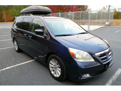 This is a 2006 Honda Odyssey Touring that is Equipped with Power Windows, Power Locks, Power Steering, Power Side Mirrors, Power Sunroof, Power Sliding Doors, Cruise Control, Leather Interior, AM-FM Radio, CD Player, Driver & Passenger Side SRS Airbags, Ice Cold A/C, Rear A/C, Child Safety Locks, Steering Wheel Controls, Factory Alloy Wheels and Much Much More. This Honda Odyssey Touring is ready for a New Owner!! THIS SOUTHERN OWNED ODYSSEY Touring IS 100% RUST FREE!! This Honda Odyssey Touring only has 142,447 Original miles!! (The Miles may be slightly higher due to frequent test drives). With power sliding side doors and a power rear lift gate, this 2006 Honda Odyssey Touring is a roomy, convenient and smooth handling minivan offering plenty of interior room and nice amenities. This Odyssey is offered in the Touring trim.  Under the hood features a 255 horsepower 3.5-liter V6. Standard equipment includes front and rear air conditioning, cruise control, power accessories, ABS brakes, and driver/passenger-side airbags.  For the safety-conscious, the Odyssey boasts a long list of equipment, including front/side-body/side-head airbags, ABS, daytime running lights, and child safety rear door locks. This Vehicle drives just like a Honda Odyssey Touring is supposed to!! It features a Blue Exterior and a Gray Leather Interior. (The Interior & Exterior shows minor wear) PLEASE SEE ALL PICTURES BEFORE BIDDING.  This vehicle's engine and transmission are in GREAT working condition. The engine does NOT OVERHEAT and has no known defects. The winner will be provided with all documentation and a 30 day Temporary Tag. We offer free airport pick-up for all winners(Atlanta Airport). Please call in advance to arrange for airport pick-up.  If you need to see additional pictures please contact us and we will e-mail them to you ASAP.