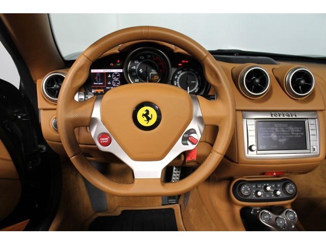 Extra Options: AFS Systen, Cruise Control, Central Tunnel in Leather, Armrest on Tunnel in Leather, Daytona Style Seat in 'Cuoio', Color for Dash in 'Cuoio', A Pillar in 'Cuoio' Leather, Electrically Operated Seats, 'Scuderia Ferrari' Shields, Magneride Dual Mode Suspension, Inn/Out Eletto. Mirror + Homelink, Parking Camera, Front and Rear Parking Sensors, Leather Headliner in 'Cuoio', High Power HIFI System, All Stitching in 'Nero', Colored Steering Wheel, Tire Pressure Measurement. Exterior Color: Nero Interior Color: Cuoio Remainder of Factory Warranty Until 07/18/2015 Genuine Maintenance Service 7 Years Until 07/18/2019 Please call sales with any questions or to schedule a test drive 415-380-9700 Having enjoyed worldwide success throughout its career, the new evolution of the Ferrari California is characterised by the number 30. That’s 30 as in the fact that it is 30 kilos lighter and 30 horse power more powerful. The California’s V8 now punches out a maximum of 490 hp with maximum torque climbing to 505 Nm at 5000 rpm, thanks to new exhaust manifolds and engine mapping. Its torque curve has also been modified and is higher across the engine’s generous rev range too. Cutting-edge aluminium fabrication techniques and construction technologies used by the Scaglietti Centre of Excellence in the manufacture of the California’s chassis, have also led to an overall reduction of 30 kg in the car’s weight without impinging in any way on its structural rigidity or performance. The abovementioned factors have also directly benefited the Ferrari’s California’s performance, reducing its 0-100 km/acceleration time to 3.8 seconds. This heightens its sporty feel without detracting from the character of a car that has won universal acclaim for its seamless melding of performance and the exceptional versatility resulting from its retractable hard top (RHT) and 2+ configuration. For clients in search of a more dynamic yet still not overly extreme driving experience, Ferrari has now also introduced the optional Handling Speciale package which features modifications to both the car’s running gear and set-up that reduce body roll and ensure prompter response to driver inputs. The package includes magnetorheological dampers controlled by a faster ECU (-50% response time) with a proprietary Ferrari algorithm. The suspension springs are also stiffer for more precise control without impinging on comfort. Lastly, higher corner entry speeds and less steering wheel activity are guaranteed by a new steering box with a lower reduction ratio (-10%).