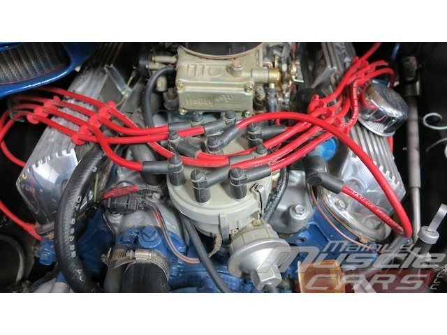 The nicely detailed 351 Windsor has been fitted with an Edelbrock aluminum intake and a Holley Carburetor. The power is good right off idle. Consider that the 1971 Broncos with a 302 sported only 205 horsepower and 300 lbs/ft of torque, not bad and much better than the later Broncos with only 125 horsepower. However, the 351 Windsor produced 290 Horsepower and 385 lbs feet of torque stock. Add in better parts like the Edelbrock Performer intake manifold, Holley carburetor, roller rocker arms, performance cam, long tube headers & free flowing exhaust with MagnaFlow mufflers and the new combo should produce around 325 horsepower and 410 lbs/ft of torque making this Bronco a lot more fun to drive.