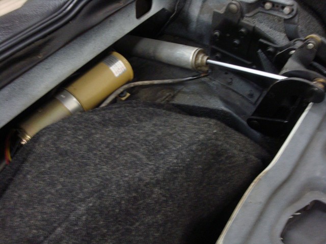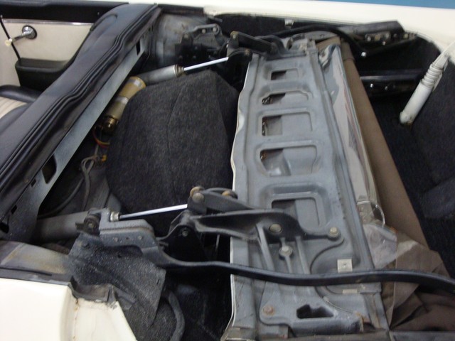 WHILE YOU WORK THE HYDRAULICS FROM ANOTHER LEVER SWITCH INSIDE THE TRUNK TO RETRACT THE CONVERTIBLE SOFT TOP.