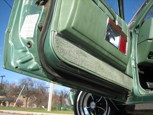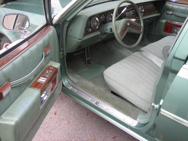 The interior is stunning, including the light green velvet seats which feel, look, and smell brand new.….and there are NO air fresheners needed in this car!  The seats are comfortable, much like a favorite chair.  It was obviously NEVER smoked in.  Cigarette lighters were never used.  There are no rips, stains or holes.  The green carpets are also like new.  The headliner does not sag.  The dash is beautiful.  Arm rests are like new….no wear, stains, etc.  Even the stitching in the seats is like brand new.  The power equipment goodies all work, except the clock is not working….not sure why but may be something simple.  Also, the power windows, A/C, radio, 8-track, etc. all work well.