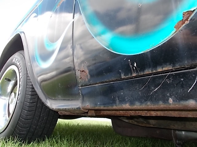 FAIRLY SOLID OL CAR.  NICE FENDERS, HOOD TRUNK LID AND TOP. LT DOOR HAS A LITTLE RUST HOLE. I THINK ONE QTUARTER HAD  A PATCH BUT IN THE FRONT. FLOORS SOLID UNTIL THE LAST 6" FROM ROCKERS, TRUNK FLOOR HASBEEN PATCHED ON THE LEFT AND WHERE TRUNKLID CLOSES THERE ARE A COUPLE HOLES DOWN IN THAT GUTTER. GOOD COWL GOOD STRUCTUE AND NICE FRAME.