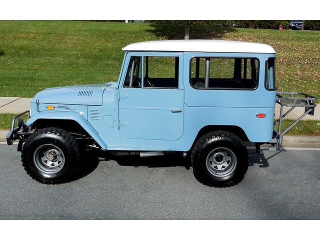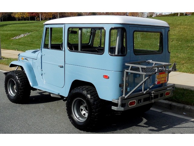 1972 Toyota FJ40 Landcruiser 4x4, Beautiful over the top V8 conversion, Fresh GM crate 350cid V8@300hp, HD 3 speed manual transmission, factory HD transfer case & HD differentials w/Warn locking hubs, new mirror finish correct coded Gleam Blue paint w/White roof, Black 60/40 split bench seat interior w/locking storage under driver’s seat, original factory removable hard top, custom High Country front & rear bumpers w/rear spare mount + gear basket, HD steel off road wheels w/31” all terrain radials, Halogen & LED headlights + fog lights, heavy duty custom 6 point full cabin roll cage, fully restored dash w/full factory gauges, brand new great sounding dual exhaust, power brakes & fast ratio steering box. Legendary all weather ability, daily driver reliability! On road or off road, it’s just cool, great beach car too !