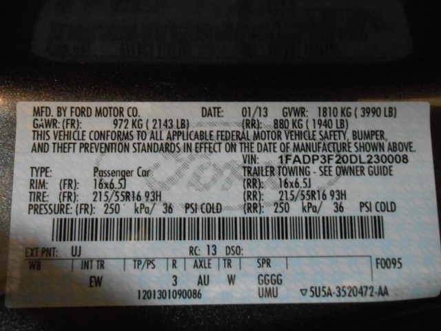 • VIN: 1FADP3F20DL230008