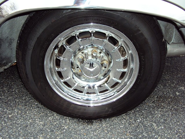 EXTERIOR BLEMISHES ARE: RUST ON THE UNDERCARRIAGE IN SEVERAL SPOTS, SOME SILVER PAINT OVERSPRAY ON THE BODY IN SPOTS, A FEW SMALL AREAS OF BUBBLING RUST ON THE BODY UNDER THE PAINT, SCRATCHES ON THE DRIVER'S DOOR GLASS, AND LOTS OF CHROME PITTING/BUBBLING ON THE ALLOY WHEELS.  YOU CAN SEE MULTIPLE PICTURES OF ALL THESE BLEMISHES BELOW THIS DESCRIPTION.  YOU DON'T NOTICE THESE ISSUES UNLESS YOU ARE VERY CLOSE TO THE CAR.  OTHER THAN THE MENTIONED ISSUES, THE EXTERIOR LOOKS VERY NICE!