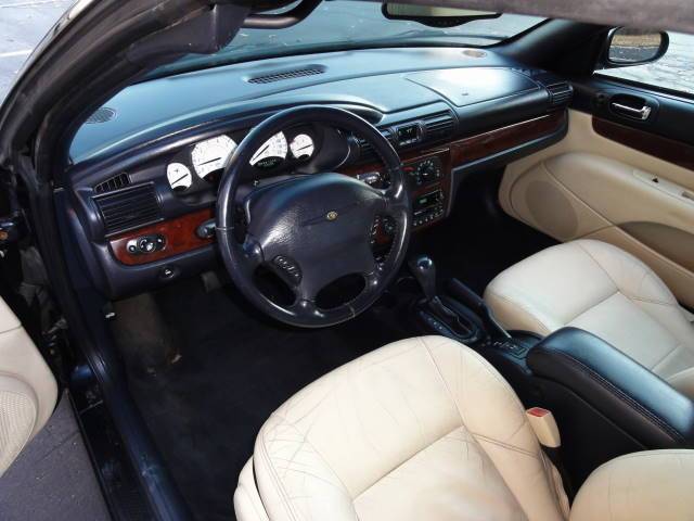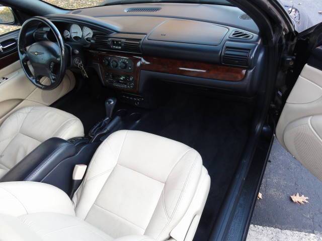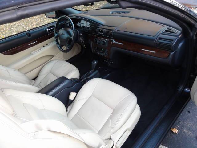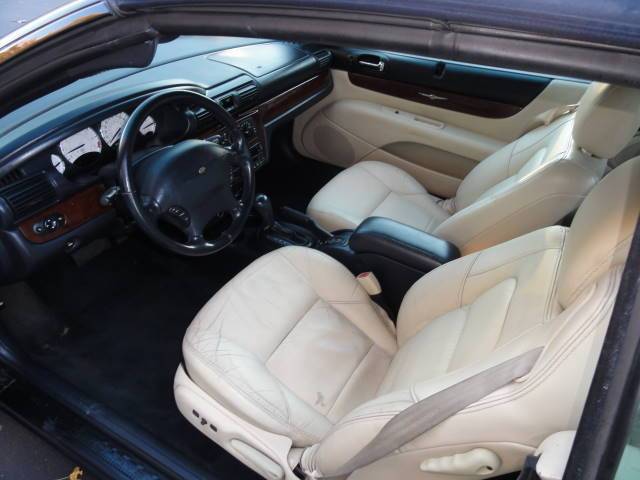 This Sebring is well equipped. It has chrome wheels, heated seats, keyless entry, CD changer, Infinity sound system, traction control, auto-stick, and power driver's seat.