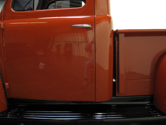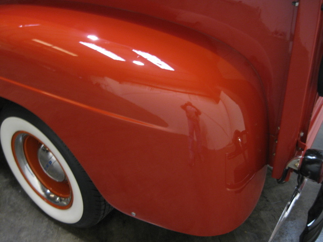 Out back, the 51 featured a "grain-tight" tailgate, meaning that it fit so snugly a load of grain wouldn't leak on the way home. The beds now had a wood floor rather than steel, and note the larger rear window that accompanied the 51 redesign.