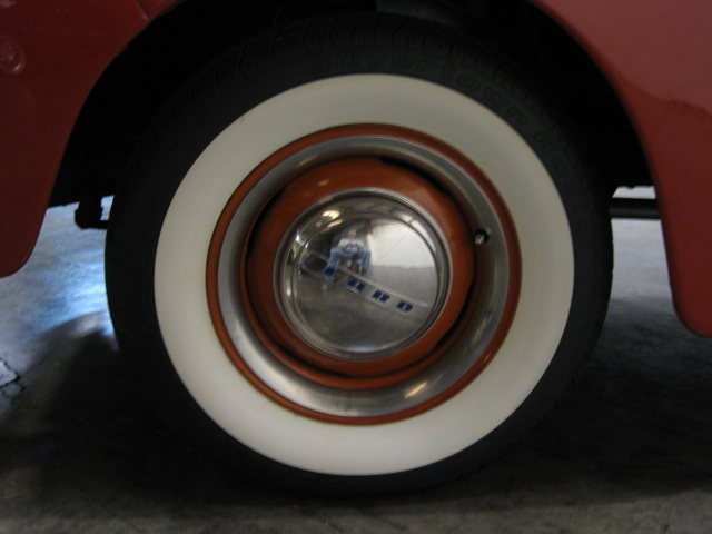 It sports correct Ford hubcaps with chrome trim accent wheel rings and wide white BF Goodrich Radial tires on 15 “ wheels.