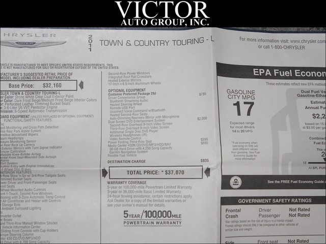 Stone White Clearcoat exterior, Dark Frost Beige/Medium Frost Beige interior, Blind Spot Monitoring and Cross Path Detection, Rear View Camera, Remote Start, Heated Leather Seats, Power Sliding Doors, Power Tailgate, Second and Third row Window Shades, Second Row Power Windows, 17 inch Alloy Wheels, DRIVERS CONVENIENCE GROUP (Bluetooth Streaming Audio, Heated Steering Wheel, Remote USB Port, Uconnect Voice Command with Bluetooth, Heated Second Row Seats, Auto Dimming Rear View Mirror), DUAL SCREEN DVD ENTERTAINMENT SYSTEM (Second Row 9 inch Video Screen, Third Row 9 inch Video Screen, Additional DVD Player, Wireless Headphones, Video Remote Control), POWER FOLDING THIRD ROW SEAT, MEDIA CENTER 430N (30 GB Hard Drive, Garmin Navigation System).