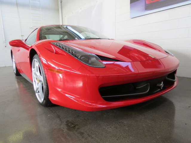 Ferrari 458 Italia, One Owner Carfax Certified. This 4.5L Mid Mounted V8 Produces 560hp @  9000 RPM, with a 7 Speed F1 Dual Clutch Transmission. This Corso Red on Black interior, comes with optional Full Recaro Seats, including Red Stitching to Panels and Passenger Seats. Standard Options consist of:
