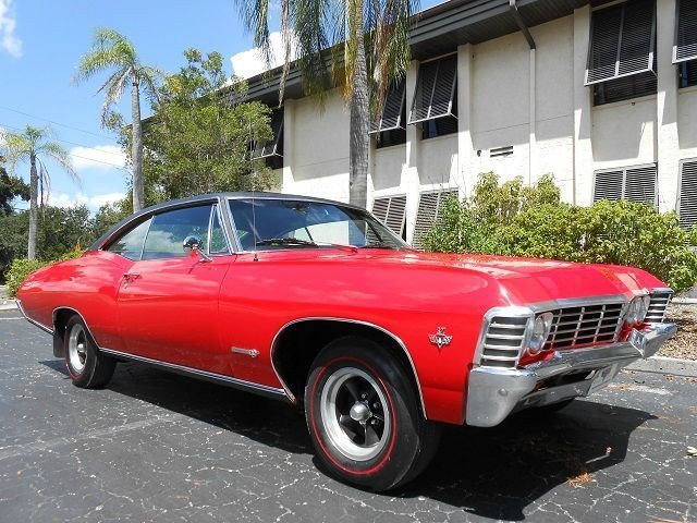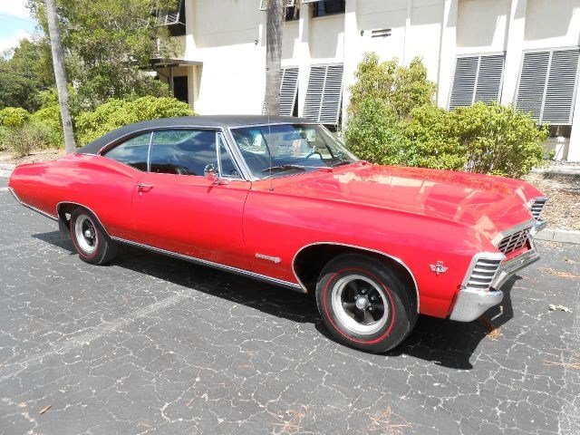 Check out this stunning Impala SS Coupe with a super high gloss expensive paint job over a very nice rust free body. This is a real SS with a nicely built 350 performance engine that runs like a clock with tons of torque and plenty of power. The emblems say 327 because that's what it was equipped with originally. Recently taken on a long road trip and it performed beautifully,all glass is in great condition,as well as brakes/tires,seats are in great condition,everything works as it should, car has factory AC and is currently being serviced to be fully operational and cold at the time of the sale. Has spare and jacking equipment. No Rust, solid floors, no undercoating, no rust repairs. Great solid trunk pan and original inner 1/4's. The 4 matching magnesium wheels with red line tires set this one off nicely. The tires are like new condition,all chrome is in excellent condition,all gauges work as they should, Consider this car a way above average, driver quality car that is fit to compete in local shows or shown off at the cruise nights. Check out the nitty-gritty details on the video. Call to get specific info 941-928-2339. Call for quick shipping quote. Enjoy a stress free easy deal, we ship cars quickly so you can be driving it next week! financing and trades arranged.