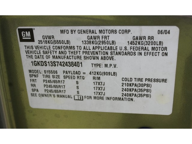 • VIN: 1GKDS13S742438401