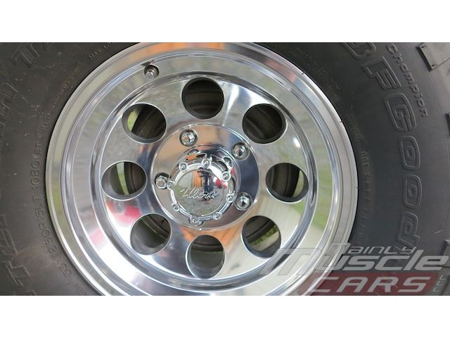 The tires and wheels are new as well. Highly polished aluminum rims have been fitted with high quality 33x12.50 BF Goodrich Radial Mud Terrains.