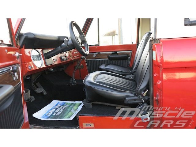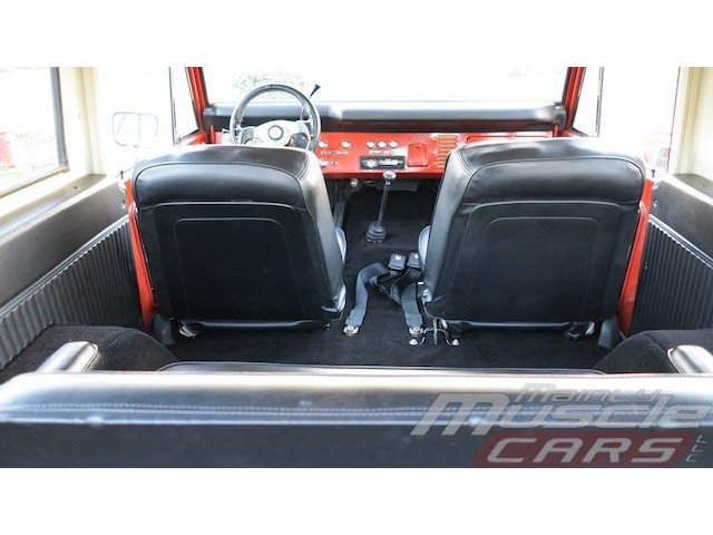 The interior is in excellent condition. The seats have been reupholstered with reproduction upholstery, new carpet front to back, new door panels and a new headliner all from Tom's Broncos. A CD player has been installed along with some 6x9 boxed speakers in back.