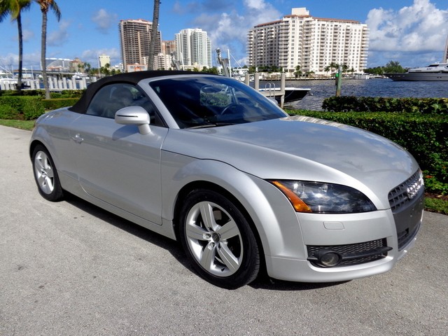Hello and thank you for stopping by, today we are offering you this, "Fun In the Sun", extra clean, well kept and maintained, clean Carfax history, 2008 Audi TT 2.0 Turbocharged automatic Roadster Convertible with navigation. She has been thoroughly inspected, serviced and is ready to go! No issues. As you can see in the many detailed photos taken, the "Silver" metallic exterior shines bright like the Florida sun, real straight, she really looks great! The "Black" leather/suede interior looks very nice as well. There are no rips, tears or fading. I especially like the suede inserts in the seats. The "Black" power convertible top is in excellent mechanical working condition. The air conditioning is as cold as ice. This TT convertible is in really nice shape! She features, navigation, interior trunk and fuel releases, keyless entry, powered rear windscreen, 4-wheel ABS disc brakes, owner's manual, floor mats, cruise control, tilt and telescopic leather steering wheel with shift controls, very good condition tires, probably 97% good, 17” alloy wheels in real good shape, external temperature display, compass, power locks, windows, mirrors, Pioneer flat screen stereo that is HD, Satellite, Bluetooth, DVD, Divx compatible, power convertible top in excellent working condition, heated external mirrors, inflator pump, tools, ESP, 12V outlet, tachometer, rear defogger, date display, fog lights, CD player, 2.0 FSI turbo, automatic transmission, leather/suede interor, clean Carfax, plus much more! This is the easiest, convertible top, that I have ever used. You only have to use one button! There is no unlatching, no twisting any handles, just super easy! I have personally driven this roadster and she runs great! She is tight-feeling, smooth, drives like new! The turbocharged engine runs strong and the automatic transmission shifts smooth. No hard shifts. I loved putting the top down and not having my hair get blown all over when the powered windscreen is up! All of our vehicles are sold with clean titles. Our titles are free and clear of any and all liens. At the time of delivery, we will include any extra keys/remotes that we received for the automobile when we purchased it. We also use our detailed pictures as a physical description as well so look at them closely. Be realistic in your expectations. Read our "terms and conditions" below. Pre-sale inspections are welcomed and encouraged. If you have any questions about this or any of my other auctions, please feel free to contact me, Avi Fraser, via e-mail at surewecanmakeadeal@rollingwheelsinc.com or you can call me at 954-527-5522. We are always open to negotiate and 4 SURE, WE WILL MAKE A DEAL WITH YOU!! Thank you for your interest and I look forward to hearing from you. Please visit our location at Rolling Wheels, 125 E. Sunrise Blvd. Ft. Lauderdale, Fl. 33304. We are open, m-f, 9am-5pm. Saturday, 9am-4pm. Closed Sunday and holidays.