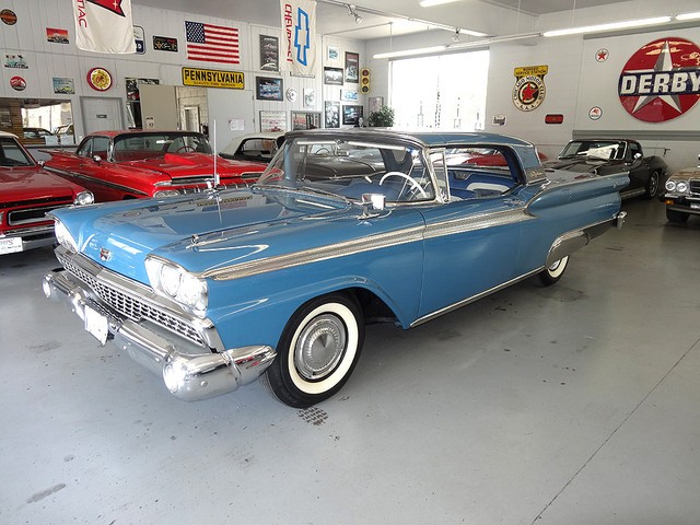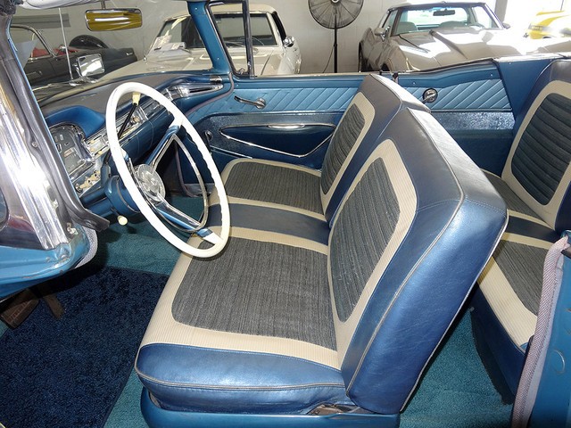 1959 FORD GALAXIE SKYLINER RETRACTABLE with Surf Blue exterior and interior.  They are only original once – and THIS IS ORIGINAL.  Like fine wine, this car has only gotten better with age!  This is an unmolested mostly original numbers matching 3 owner car.  The last owner loved it since 1960.  A former