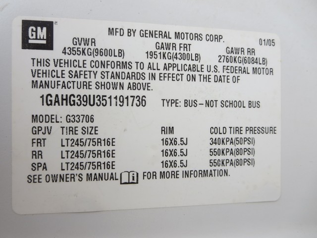 2005 CHEVY EXPRESS 3500 15 PASSENGER ACCIDENT FREE WITH ONLY 74K